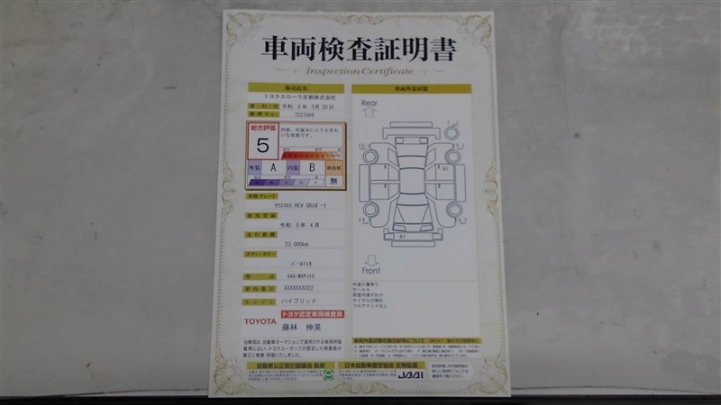 詳細及び現状の車両状態につきましては、店舗スタッフまでお尋ねください。 - 注2)上記と同様の評価点・状態表を「車両検査証明書」として店舗の展示車両に搭載しております。