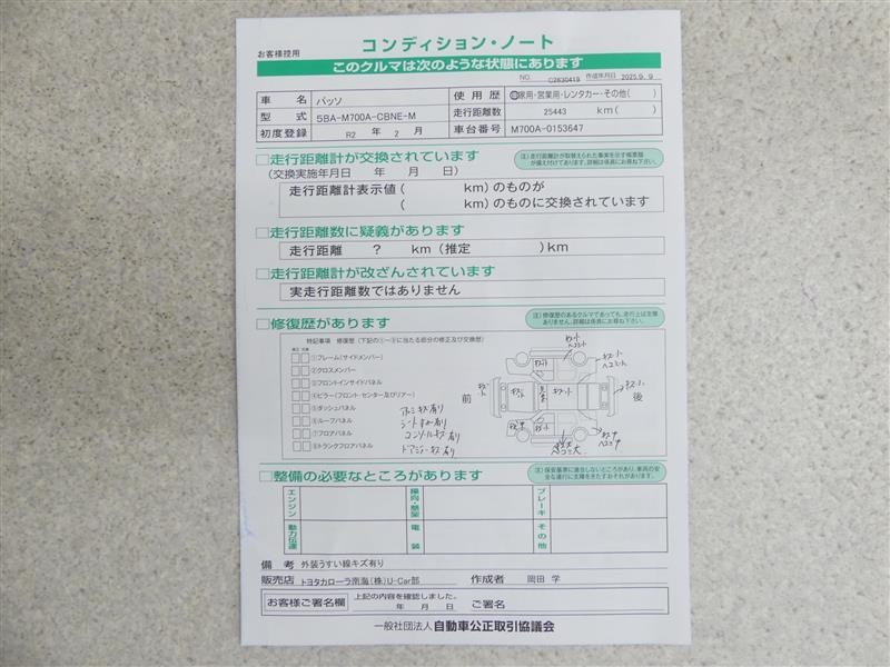 | 走行距離 | 25,000km | 修復歴 | なし |