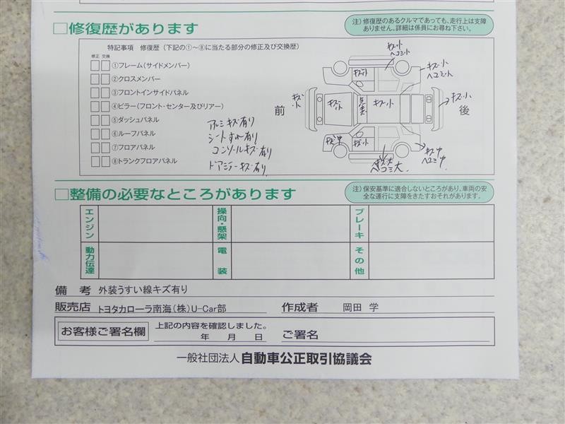 - 「修復歴あり」の場合、修復部位の詳細につきましては、販売店へお問合せください。