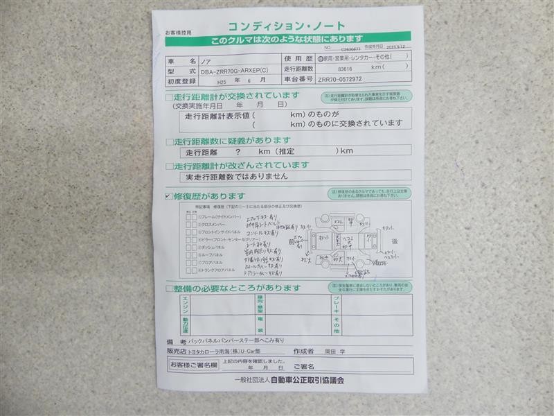 | 走行距離 | 84,000km | 修復歴 | あり |