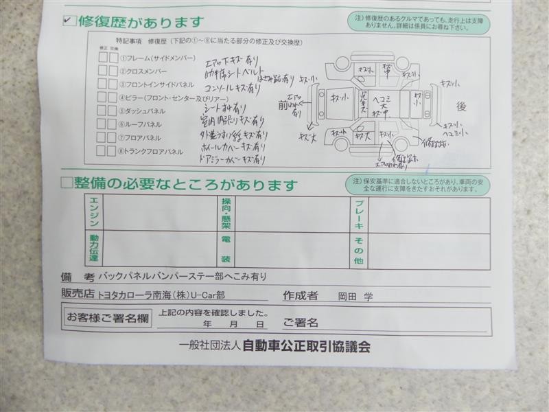 - 「修復歴あり」の場合、修復部位の詳細につきましては、販売店へお問合せください。
