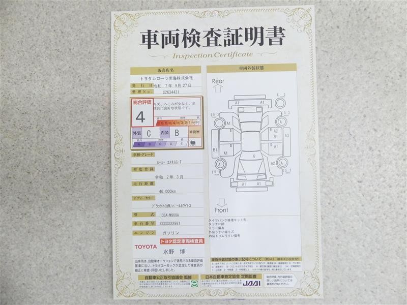 詳細及び現状の車両状態につきましては、店舗スタッフまでお尋ねください。 - 注2)上記と同様の評価点・状態表を「車両検査証明書」として店舗の展示車両に搭載しております。