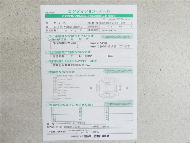 | 走行距離 | 86,000km | 修復歴 | あり |