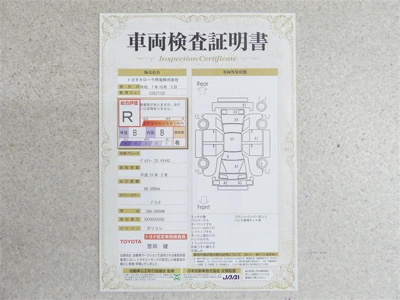 詳細及び現状の車両状態につきましては、店舗スタッフまでお尋ねください。 - 注2)上記と同様の評価点・状態表を「車両検査証明書」として店舗の展示車両に搭載しております。
