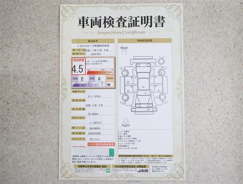 詳細及び現状の車両状態につきましては、店舗スタッフまでお尋ねください。 - 注2)上記と同様の評価点・状態表を「車両検査証明書」として店舗の展示車両に搭載しております。