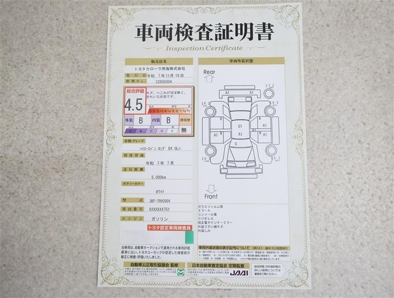 詳細及び現状の車両状態につきましては、店舗スタッフまでお尋ねください。 - 注2)上記と同様の評価点・状態表を「車両検査証明書」として店舗の展示車両に搭載しております。