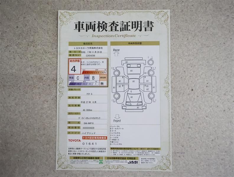 詳細及び現状の車両状態につきましては、店舗スタッフまでお尋ねください。 - 注2)上記と同様の評価点・状態表を「車両検査証明書」として店舗の展示車両に搭載しております。