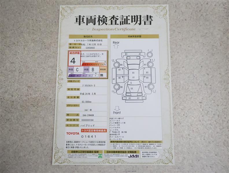 詳細及び現状の車両状態につきましては、店舗スタッフまでお尋ねください。 - 注2)上記と同様の評価点・状態表を「車両検査証明書」として店舗の展示車両に搭載しております。