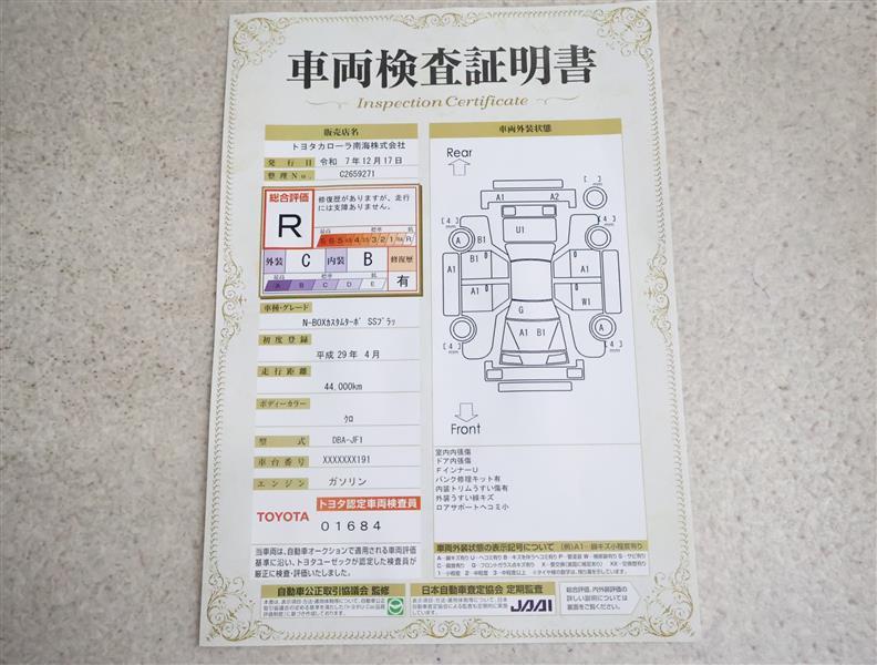 詳細及び現状の車両状態につきましては、店舗スタッフまでお尋ねください。 - 注2)上記と同様の評価点・状態表を「車両検査証明書」として店舗の展示車両に搭載しております。