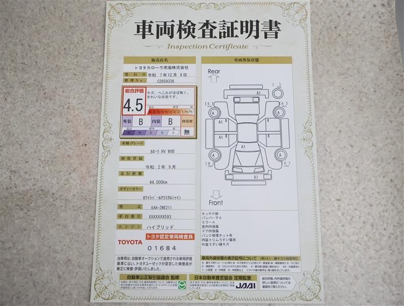 - 表示項目・方法・運用体制等について、自動車公正取引協議会の定める基準を満たした「トヨタU-Car品質評価制度」に基づき作成しております。