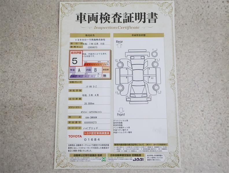 詳細及び現状の車両状態につきましては、店舗スタッフまでお尋ねください。 - 注2)上記と同様の評価点・状態表を「車両検査証明書」として店舗の展示車両に搭載しております。