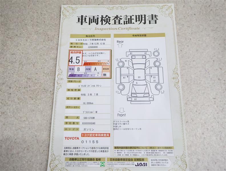 - 表示項目・方法・運用体制等について、自動車公正取引協議会の定める基準を満たした「トヨタU-Car品質評価制度」に基づき作成しております。