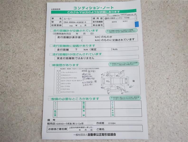 | 走行距離 | 82,000km | 修復歴 | なし |