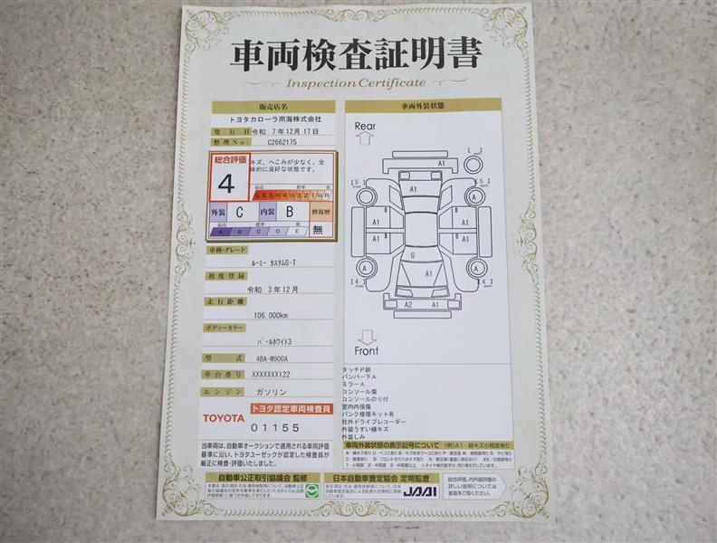 詳細及び現状の車両状態につきましては、店舗スタッフまでお尋ねください。 - 注2)上記と同様の評価点・状態表を「車両検査証明書」として店舗の展示車両に搭載しております。