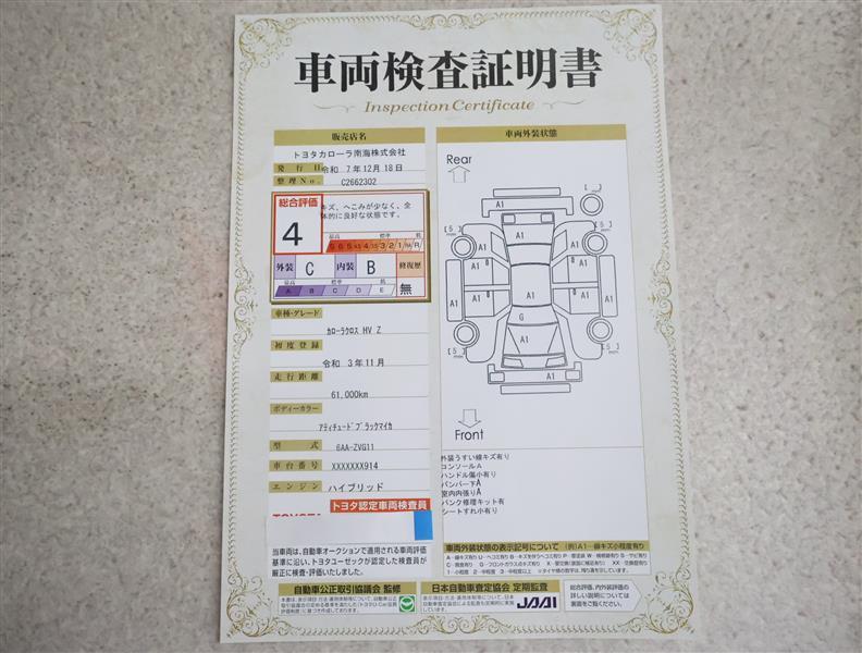詳細及び現状の車両状態につきましては、店舗スタッフまでお尋ねください。 - 注2)上記と同様の評価点・状態表を「車両検査証明書」として店舗の展示車両に搭載しております。