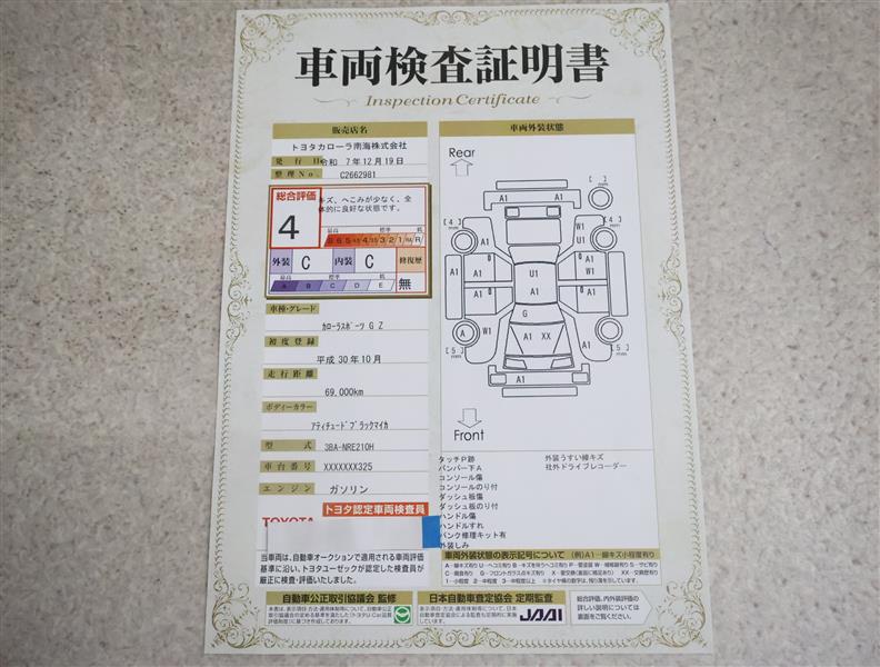 詳細及び現状の車両状態につきましては、店舗スタッフまでお尋ねください。 - 注2)上記と同様の評価点・状態表を「車両検査証明書」として店舗の展示車両に搭載しております。