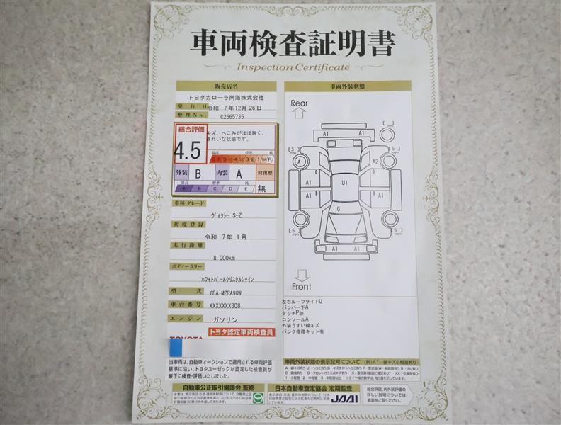 詳細及び現状の車両状態につきましては、店舗スタッフまでお尋ねください。 - 注2)上記と同様の評価点・状態表を「車両検査証明書」として店舗の展示車両に搭載しております。