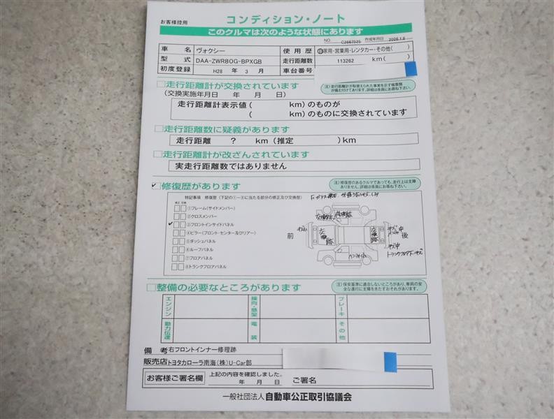 | 走行距離 | 113,000km | 修復歴 | あり |