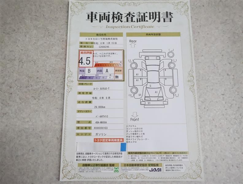 詳細及び現状の車両状態につきましては、店舗スタッフまでお尋ねください。 - 注2)上記と同様の評価点・状態表を「車両検査証明書」として店舗の展示車両に搭載しております。