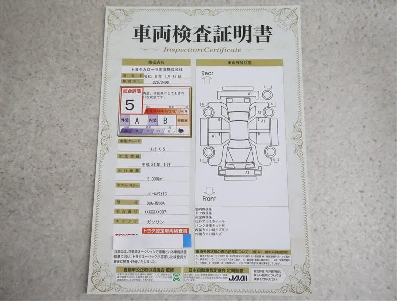 詳細及び現状の車両状態につきましては、店舗スタッフまでお尋ねください。 - 注2)上記と同様の評価点・状態表を「車両検査証明書」として店舗の展示車両に搭載しております。