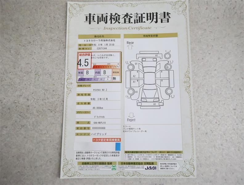 詳細及び現状の車両状態につきましては、店舗スタッフまでお尋ねください。 - 注2)上記と同様の評価点・状態表を「車両検査証明書」として店舗の展示車両に搭載しております。