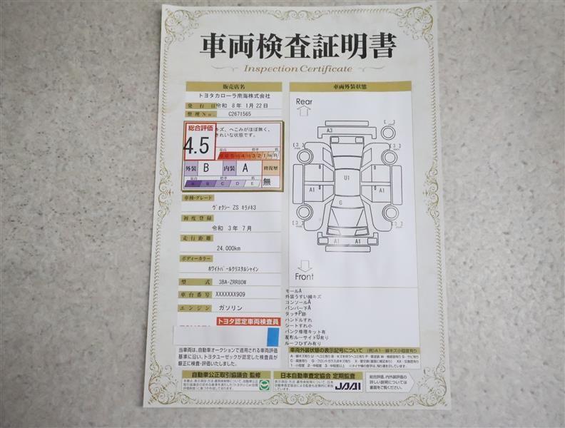詳細及び現状の車両状態につきましては、店舗スタッフまでお尋ねください。 - 注2)上記と同様の評価点・状態表を「車両検査証明書」として店舗の展示車両に搭載しております。
