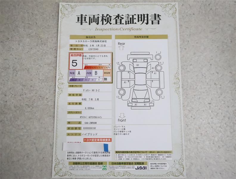 詳細及び現状の車両状態につきましては、店舗スタッフまでお尋ねください。 - 注2)上記と同様の評価点・状態表を「車両検査証明書」として店舗の展示車両に搭載しております。