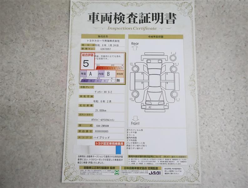 詳細及び現状の車両状態につきましては、店舗スタッフまでお尋ねください。 - 注2)上記と同様の評価点・状態表を「車両検査証明書」として店舗の展示車両に搭載しております。