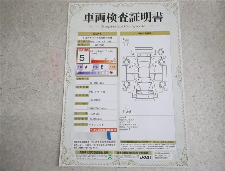 詳細及び現状の車両状態につきましては、店舗スタッフまでお尋ねください。 - 注2)上記と同様の評価点・状態表を「車両検査証明書」として店舗の展示車両に搭載しております。