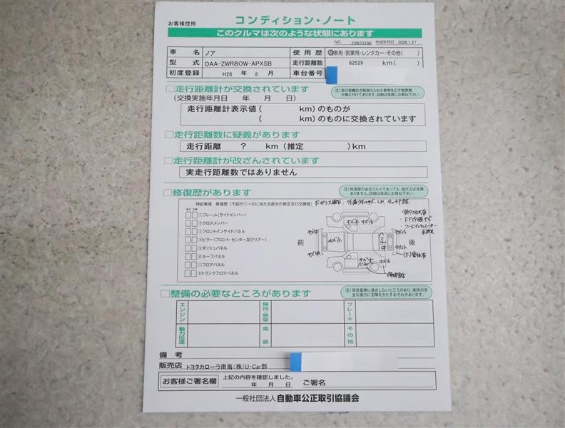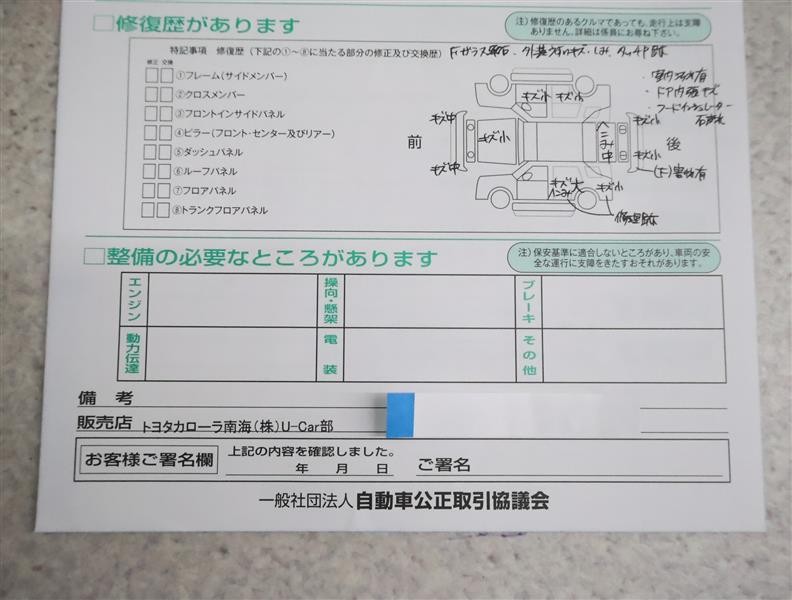 - 「修復歴あり」の場合、修復部位の詳細につきましては、販売店へお問合せください。