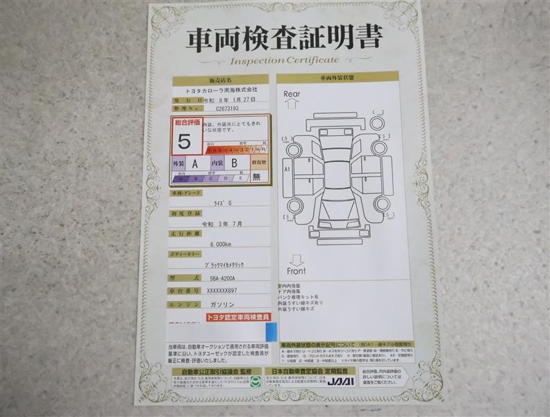 詳細及び現状の車両状態につきましては、店舗スタッフまでお尋ねください。 - 注2)上記と同様の評価点・状態表を「車両検査証明書」として店舗の展示車両に搭載しております。