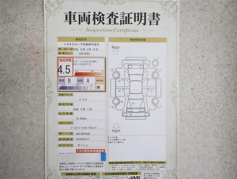 詳細及び現状の車両状態につきましては、店舗スタッフまでお尋ねください。 - 注2)上記と同様の評価点・状態表を「車両検査証明書」として店舗の展示車両に搭載しております。