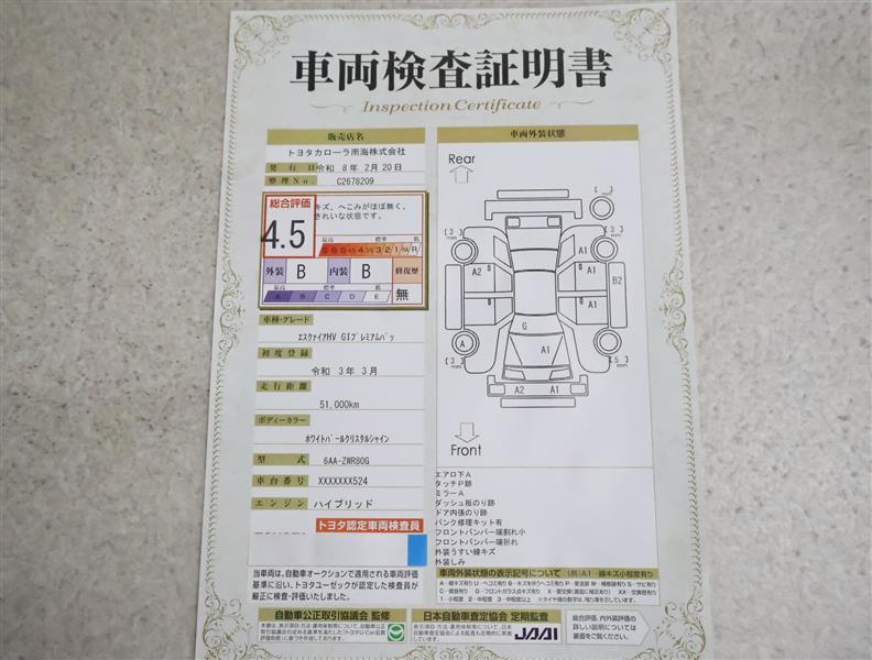 詳細及び現状の車両状態につきましては、店舗スタッフまでお尋ねください。 - 注2)上記と同様の評価点・状態表を「車両検査証明書」として店舗の展示車両に搭載しております。