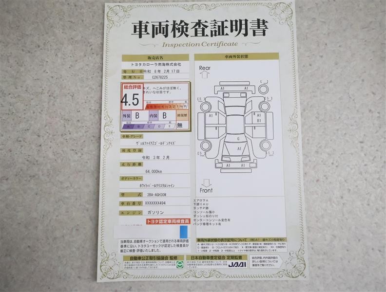 | ボディカラー | ホワイトパールクリスタルシャイン | 修復歴 | なし |