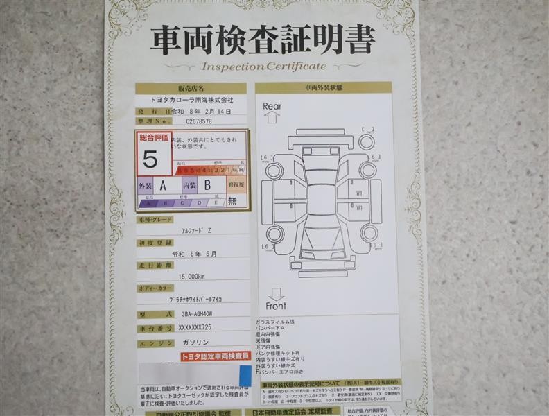 詳細及び現状の車両状態につきましては、店舗スタッフまでお尋ねください。 - 注2)上記と同様の評価点・状態表を「車両検査証明書」として店舗の展示車両に搭載しております。