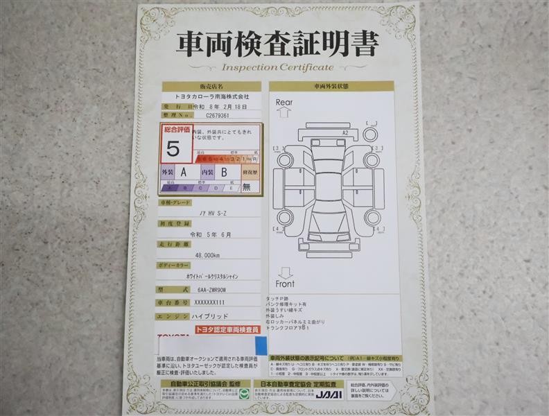 詳細及び現状の車両状態につきましては、店舗スタッフまでお尋ねください。 - 注2)上記と同様の評価点・状態表を「車両検査証明書」として店舗の展示車両に搭載しております。