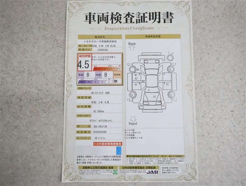 詳細及び現状の車両状態につきましては、店舗スタッフまでお尋ねください。 - 注2)上記と同様の評価点・状態表を「車両検査証明書」として店舗の展示車両に搭載しております。