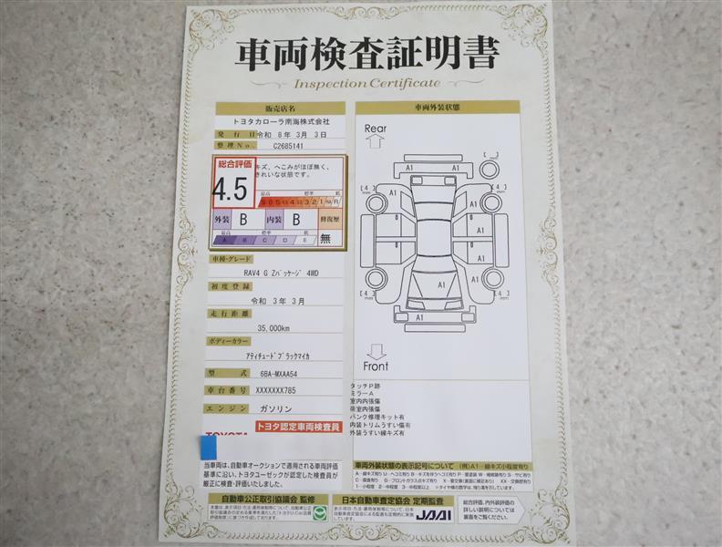 詳細及び現状の車両状態につきましては、店舗スタッフまでお尋ねください。 - 注2)上記と同様の評価点・状態表を「車両検査証明書」として店舗の展示車両に搭載しております。