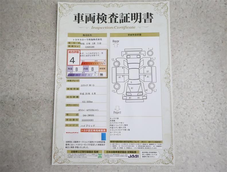 詳細及び現状の車両状態につきましては、店舗スタッフまでお尋ねください。 - 注2)上記と同様の評価点・状態表を「車両検査証明書」として店舗の展示車両に搭載しております。