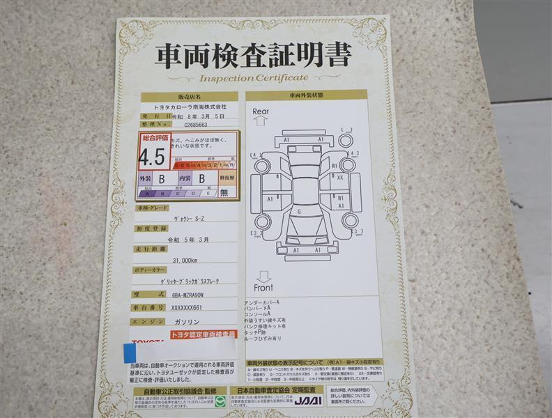 詳細及び現状の車両状態につきましては、店舗スタッフまでお尋ねください。 - 注2)上記と同様の評価点・状態表を「車両検査証明書」として店舗の展示車両に搭載しております。