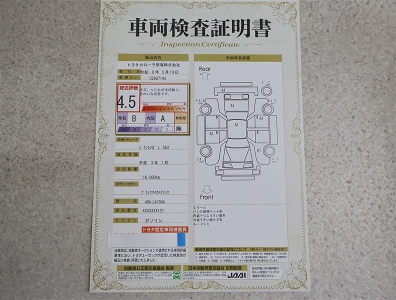 詳細及び現状の車両状態につきましては、店舗スタッフまでお尋ねください。 - 注2)上記と同様の評価点・状態表を「車両検査証明書」として店舗の展示車両に搭載しております。