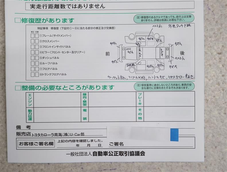 - 「修復歴あり」の場合、修復部位の詳細につきましては、販売店へお問合せください。