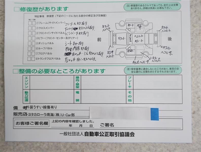 - 「定期点検整備なし(要整備箇所あり)」の場合、整備箇所につきましては、販売店へお問合せください。