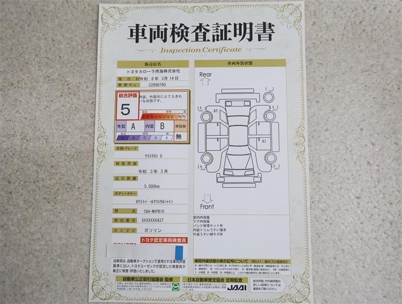- 表示項目・方法・運用体制等について、自動車公正取引協議会の定める基準を満たした「トヨタU-Car品質評価制度」に基づき作成しております。