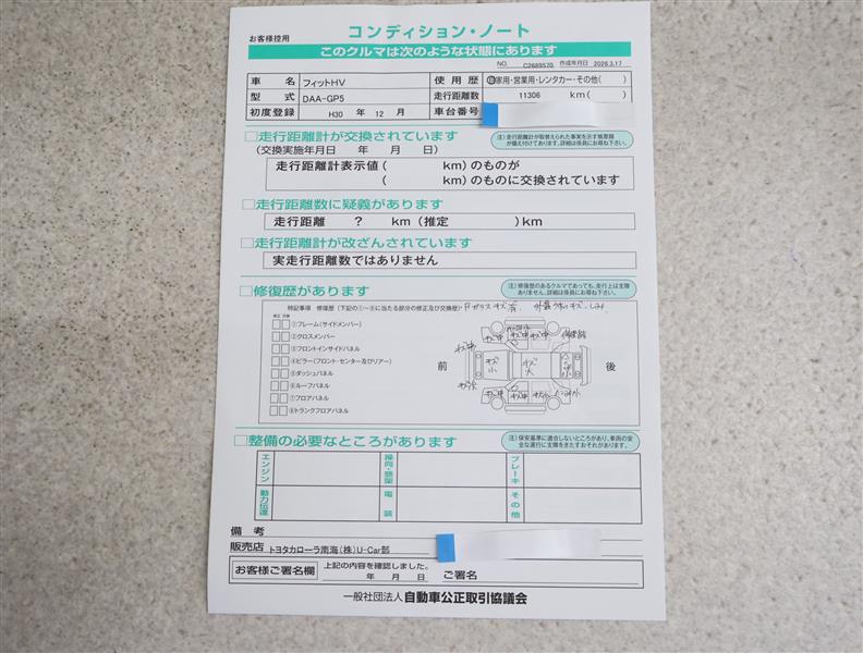 - 「定期点検整備なし(要整備箇所あり)」の場合、整備箇所につきましては、販売店へお問合せください。
