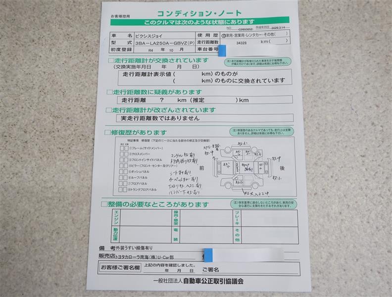 - 「定期点検整備なし(要整備箇所あり)」の場合、整備箇所につきましては、販売店へお問合せください。