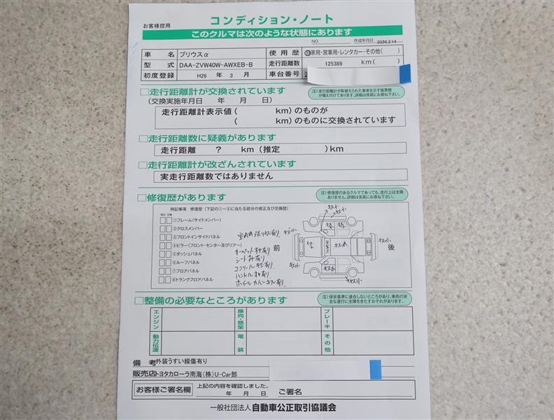| 走行距離 | 125,000km | 修復歴 | なし |