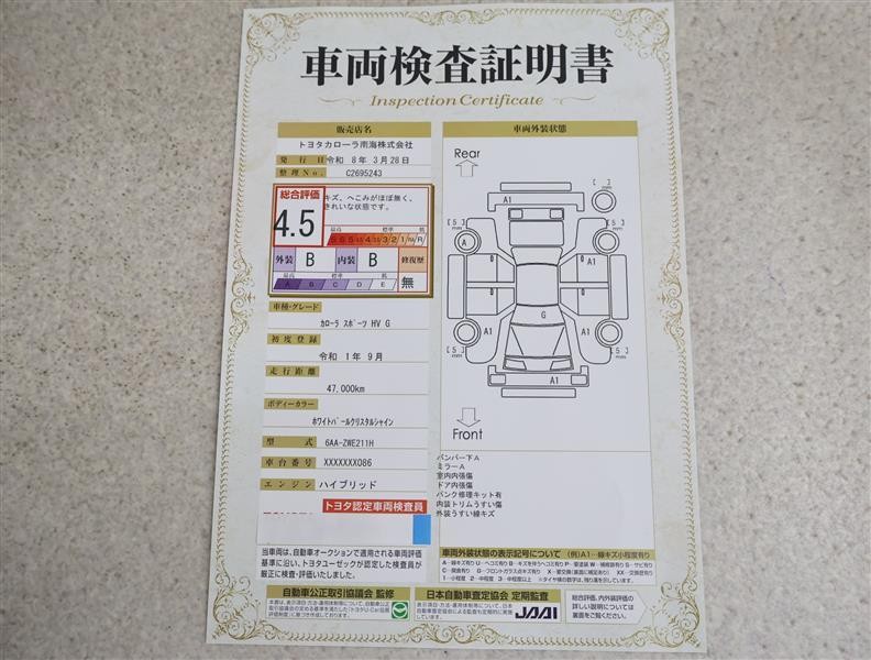詳細及び現状の車両状態につきましては、店舗スタッフまでお尋ねください。 - 注2)上記と同様の評価点・状態表を「車両検査証明書」として店舗の展示車両に搭載しております。