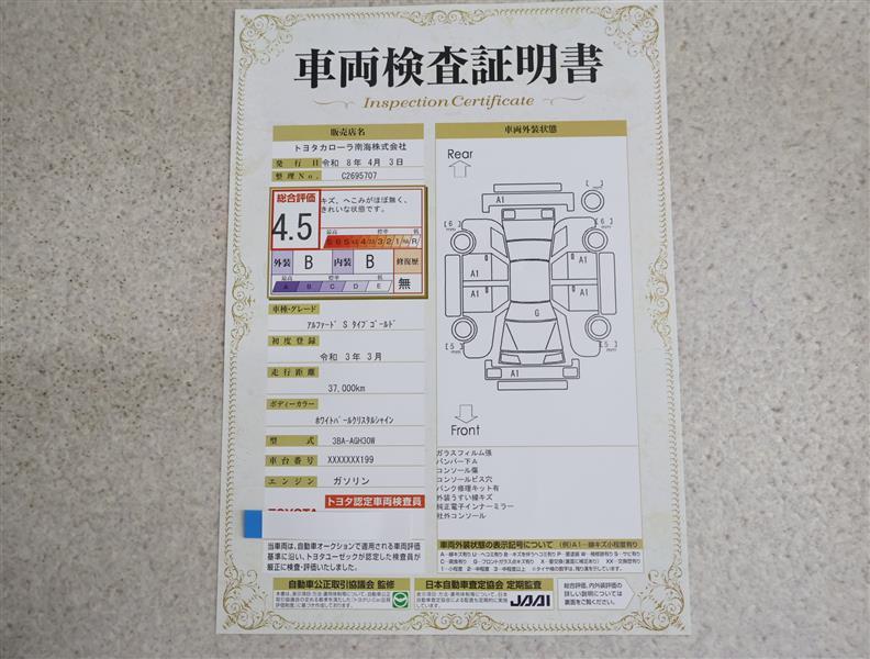 詳細及び現状の車両状態につきましては、店舗スタッフまでお尋ねください。 - 注2)上記と同様の評価点・状態表を「車両検査証明書」として店舗の展示車両に搭載しております。