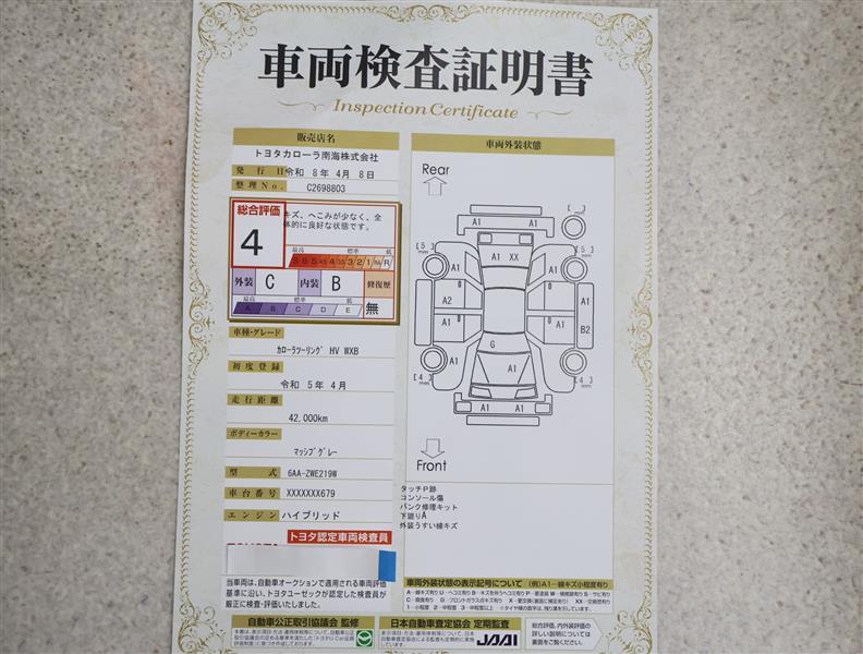 詳細及び現状の車両状態につきましては、店舗スタッフまでお尋ねください。 - 注2)上記と同様の評価点・状態表を「車両検査証明書」として店舗の展示車両に搭載しております。